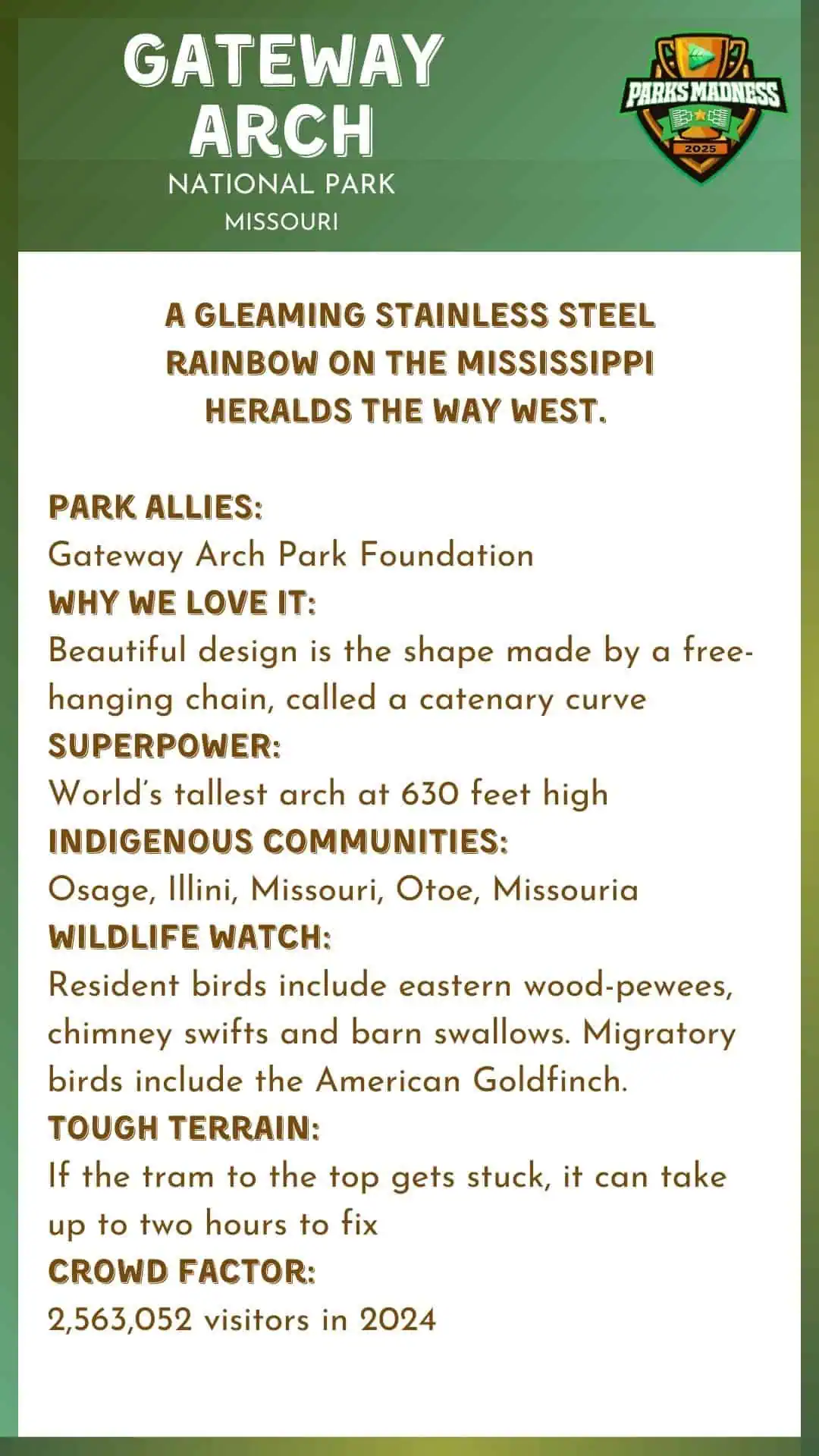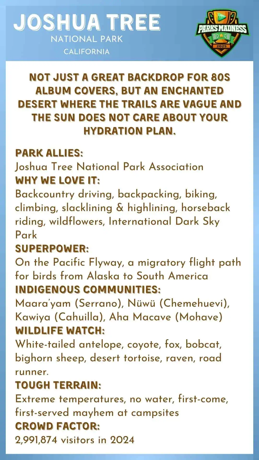 Meet the Parks Madness 2025 contenders and explore the 64 incredible places competing to be crowned the 2025 Champion. PrevNext
